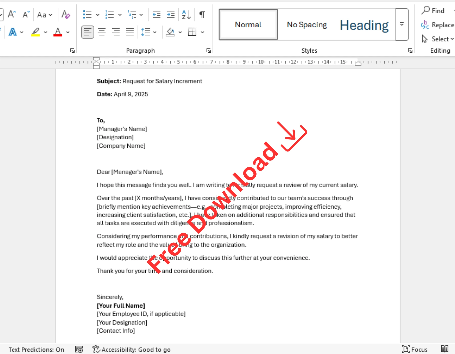 - Ask to Discuss: Close the letter by requesting a meeting to discuss the raise.